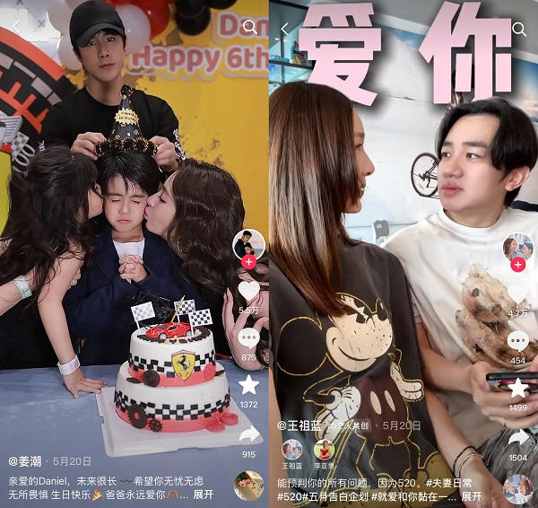 在此次活動的分話題#第520次心動 之下,明星@姜潮 發布了一則為兒子慶生的祝福視頻。視頻中,一家四口團聚在一起為兒子Daniel過生日,詮釋著親情的溫馨。明星夫婦@王祖藍、@李亞男,則是上演了一出“如何預判老婆的每一個問題”的“小品”,用“夸夸轟炸”回應老婆的每一個問題,詮釋著夫妻之間的心領神會。高甜情侶@錘娜麗莎、@李川Leon,則是延續了他們一貫的搞笑風格,上演了一出油總和搞笑女王的雙向奔赴。