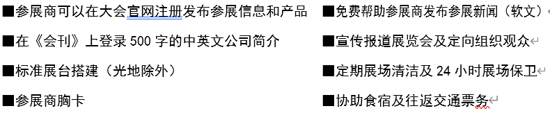 其他廣告費用:廣場大牌子:10000元/個(3*6m);手提袋:30000元/1萬個;門票背面廣告:20000元/4萬張;技術講座:10000元/每場·45分鐘(含場地及燈光音響、投影儀、講臺座椅、白板、礦泉水等)。?參展程序1.參展單位請詳細填寫《參展申請表》,并加蓋公章后傳真或交寄至大會組委會;2.企業報名后7個工作日內將參展費用匯入大會組委會指定帳號,從而確定展位;3.展位、廣告等由組委會統一安排,“先申請、先付款、先分配”,協辦單位可優先安排;4.已報名參展企業因自原因不能參展,其所繳納費用不作返還,所訂展位由主辦方全權處理;5.服從展會總體布局,組織單位有權在必要時對個別展臺位置進行調整,因不可抗拒的因素如自然災害,政府行為,社會異常事件等,組織單位可以延遲或取消展會;6.特別提示:所租用展位嚴禁轉租、轉售展位;不準展出假冒侵權產品,以及在展廳內現場零售展品或出售其他商品;一經發現組委會將取消參展資格,展位費用不再退還;不準在通道上堆放物品。? 免費增值服務