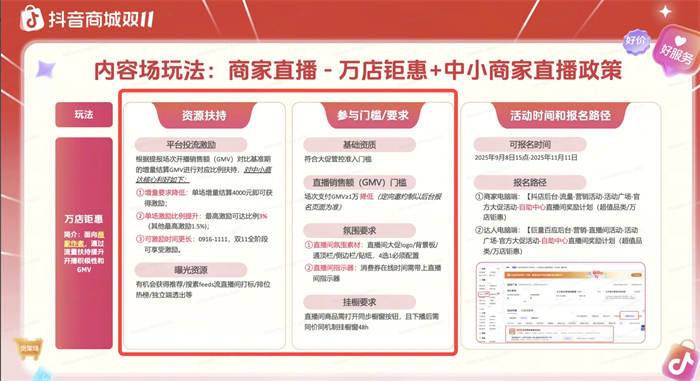 抖音電商則用明確的激勵(lì)條款,讓中小商家重拾「付出必有所得」的正反饋,每一張流量券都是一根杠桿,為直播間提供破圈機(jī)會。