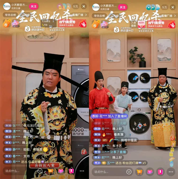 基于經(jīng)典影視劇帶來的靈感,直播將產(chǎn)品賣點、國補政策融入斷案劇情,既借雙11節(jié)點喚醒用戶家電煥新的意愿;又讓用戶在趣味劇情中理解產(chǎn)品,下單決策也變得更加順暢。